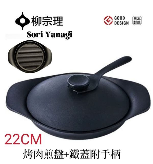 日本柳宗理sori Yanagi 南部鐵器條紋平底烤盤平底煎盤平底煎鑊鑄鐵鍋不粘無塗層鍋双耳生鐵鍋煎PAN鍋條紋牛排煎鍋(鐵蓋附手柄)nambu tekki baking pan pot 產地:日本