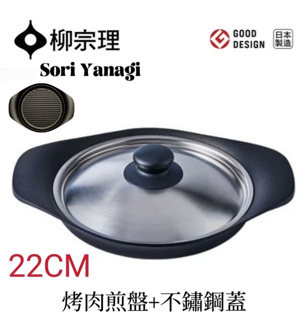 日本柳宗理sori Yanagi 南部鐵器條紋平底烤盤平底煎盤平底煎鑊鑄鐵鍋不粘無塗層鍋双耳生鐵鍋煎PAN煎蛋鍋條紋牛排煎鍋(不鏽鋼蓋)nambu tekki baking pan pot 產地:日本