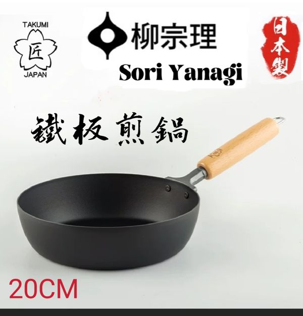 日本柳宗理sori yanagi 匠系列平底煎鍋平底煎鑊煎pan平底鍋平底炒鑊鐵鍋鐵鑊無塗層鍋鐵板煎鍋20CM frying pan pot wok 產地:日本(送:鍋蓋)
