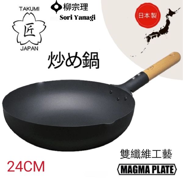 日本柳宗理sori yanagi 匠系列平底炒鍋平底鑊平底鍋平底炒鑊鐵鍋鐵鑊無塗層鍋中華鍋24CM frying pot wok 產地:日本(送:鍋蓋)