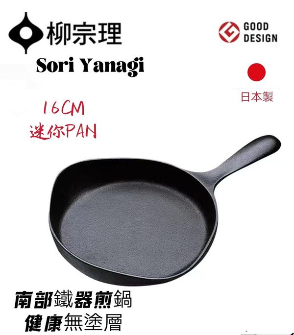 日本柳宗理sori Yanagi 南部鐵器迷你平底煎鍋不粘鍋鑄鐵鍋煎PAN煎蛋牛排煎鍋煎盤16CM(無蓋)mini frying pan pot/產地:日本