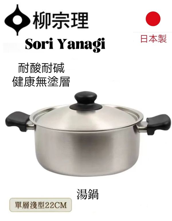 日本柳宗理sori Yanagi 哑光不鏽鋼淺型雙耳湯鍋雙耳煲煲湯鍋煮麵鍋煮粥鍋湯煲soup pot stock pot 產地:日本