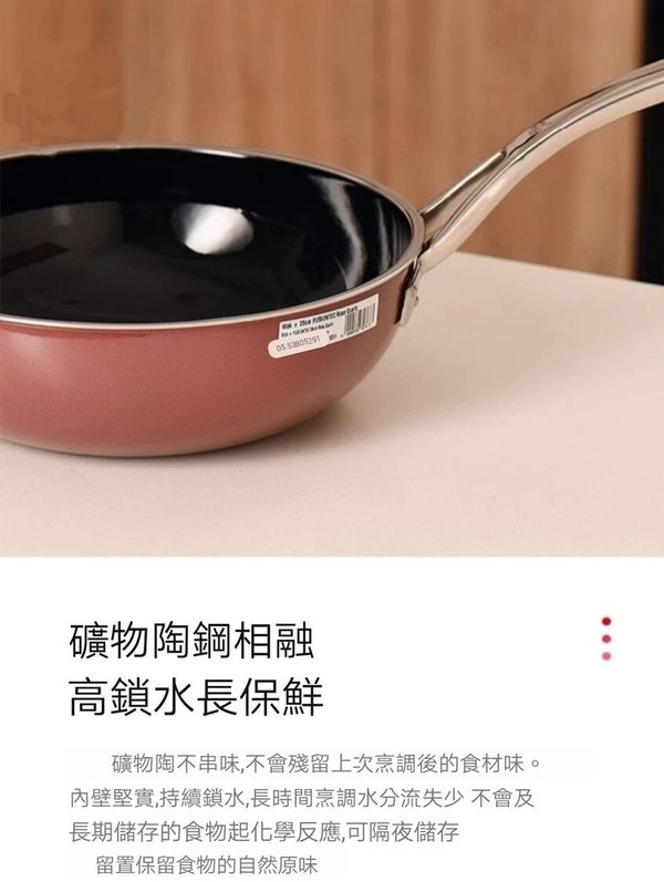 1. 礦物陶鍋身:使用礦物元素,經過 1200~1300度高溫冶煉後,配製出天然獨一無二的礦物陶鍋身,再透過晶礦鑄鋼技術,完美鎔鑄為一體。