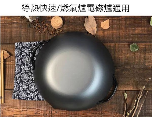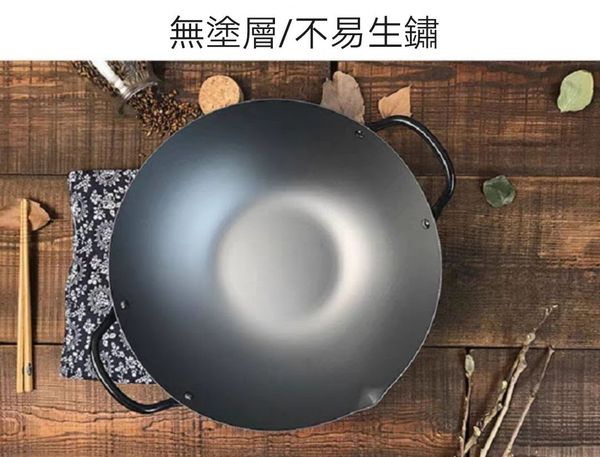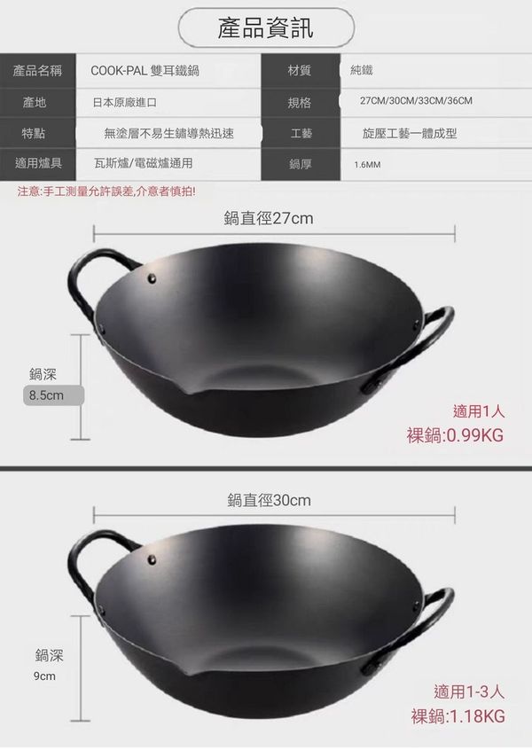 日本吉川YOSHIKAWA Cook-pal 錬 REN 雙耳炒鍋鐵鍋窒化氮化鍋平底鍋平底鑊平底煎鑊不黏鍋無塗層鍋雙耳炒鑊鐵鑊中式鑊Chinese wok 36CM 產地:日本【送:原裝鍋蓋+鏟】