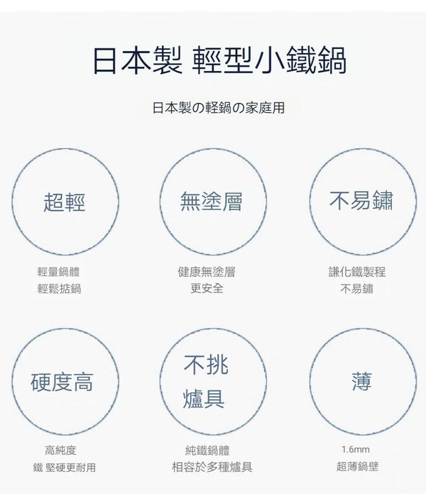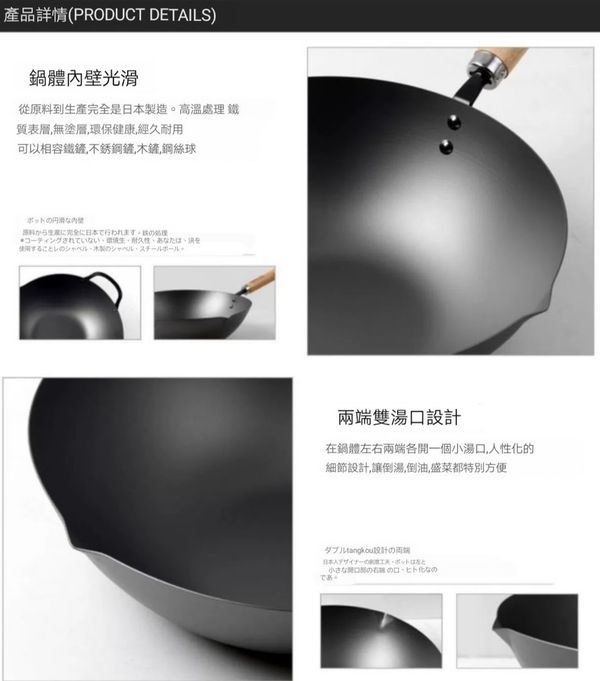 技術,產品。從素材到製作完全日本製造,安全安心。產品經特殊加工處理,使調理鍋在沒有塗層下 也不易生鏽、不易焦、不易粘鍋,容易清潔,並可用於明火及電磁爐.
