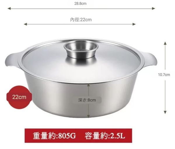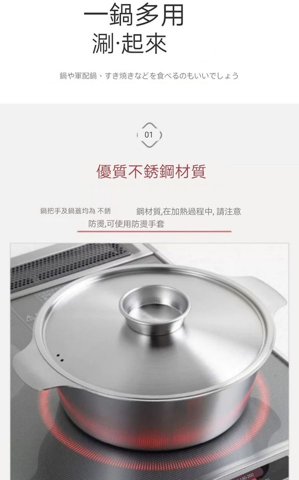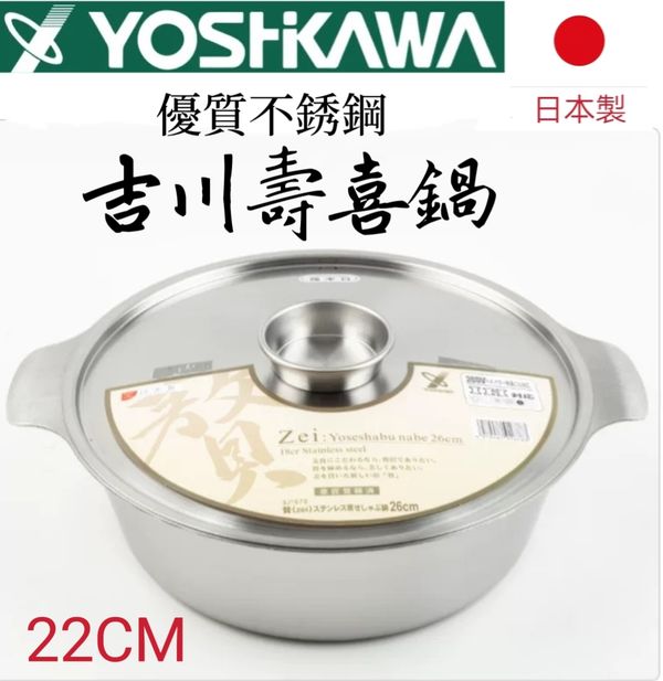 日本吉川YOSHIKAWA 不銹鋼湯鍋煮麵鍋湯煲火鍋鍋打邊爐鍋壽喜鍋22CM steel soup pot wok 產地:日本
