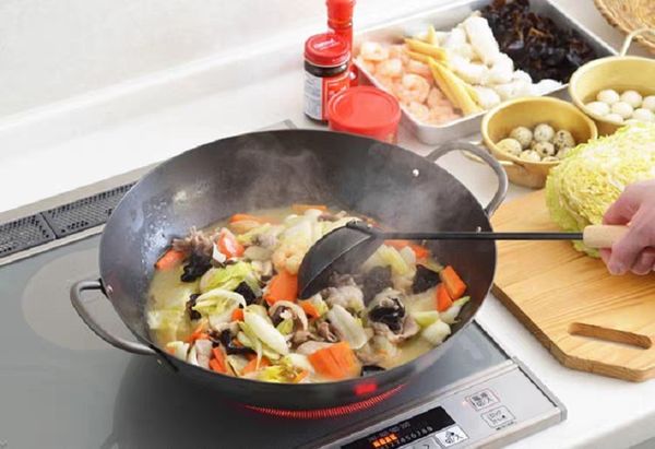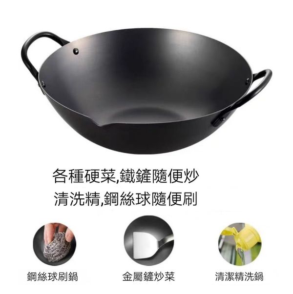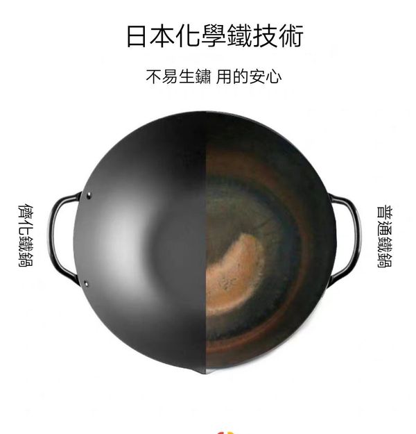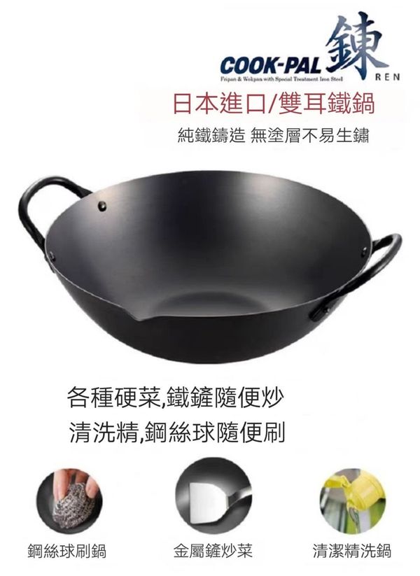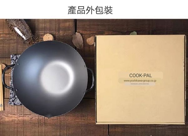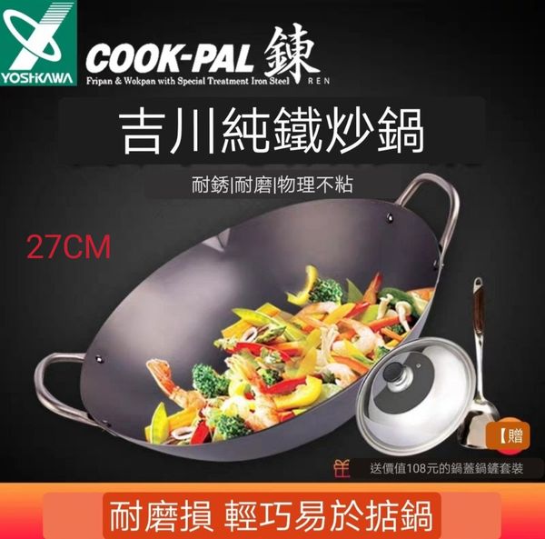 日本吉川YOSHIKAWA Cook-pal 錬REN雙耳炒鍋平底鑊平底鍋平底煎鑊平府煎鍋鐵鍋窒化氮化鍋不黏鍋無塗層鍋廣東鑊中式鑊鐵鑊雙耳炒鑊chinese wok 27CM產地:日本【送:鍋蓋+鏟】