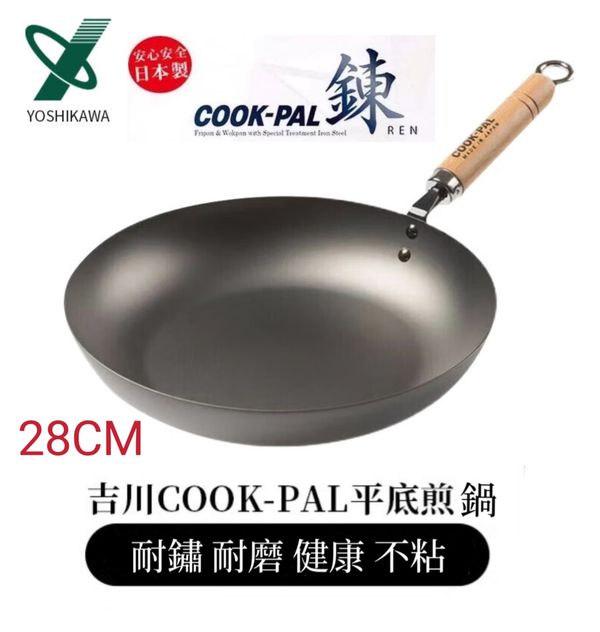 吉川YOSHIKAWA cook-pal錬REN健康無塗層不粘鍋平底煎鍋平底煎鑊煎pan炒鑊煎鑊炒鍋煎鍋28CM nitride cast iron pan wok pot 產地:日本(送鍋蓋+鏟)
