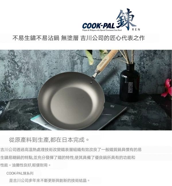 COOK-PAL錬- 專注研究鐵的特質與功能,不斷開發創新技術,產品。從素材到製作完全日本製造,安全安心。產品經特殊加工處理,使調理鍋在沒有塗層下 也不易生鏽、不易焦、不易粘鍋,容易清潔,並可用於明火及電磁爐.