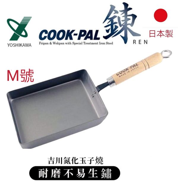 Joywell 日本吉川YOSHIKAWA cook-pal REN純鐵玉子燒鍋平底鍋玉子煎鍋方形煎pan不粘鍋無塗層鍋牛排煎鍋平底煎鑊玉子煎鑊M號square pan wok pot//產地:日本