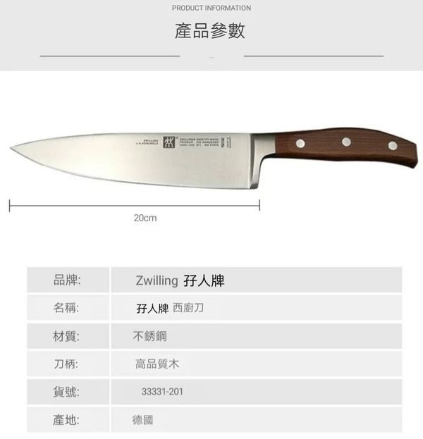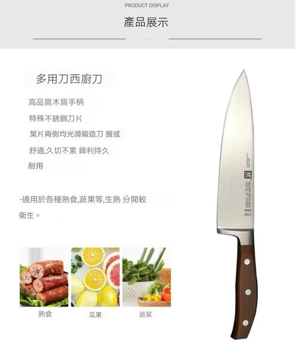 德國製德國孖人牌ZWILLING不銹鋼高品質木柄西廚刀廚房用刀多功能刀廚師刀三德刀kitchen knife 產地:德國