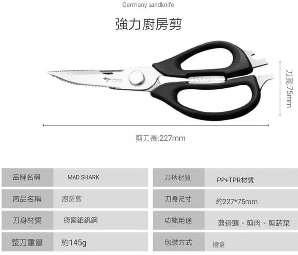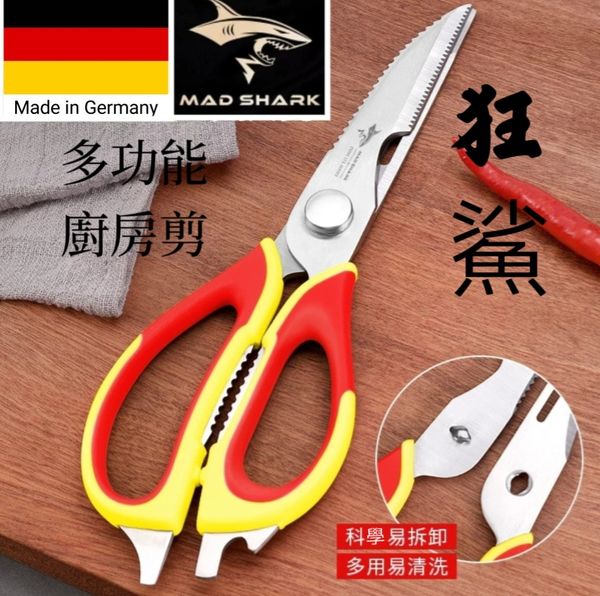 德國製德國狂鯊mad shark不銹鋼多功能可拆卸強力廚房剪刀雞骨剪食物剪餐用剪刀輔食剪廚用剪刀紅黃色multifunction kitchen scissors shears產地:德國(送:磁吸套)