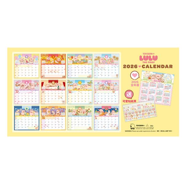 LuLu The Piggy-LuLu The Piggy 港版 2026 壁掛 年曆 福字 掛曆 掛牆 月曆 日曆 香港假期 罐頭豬 Lulu豬