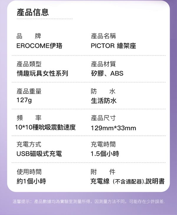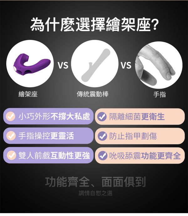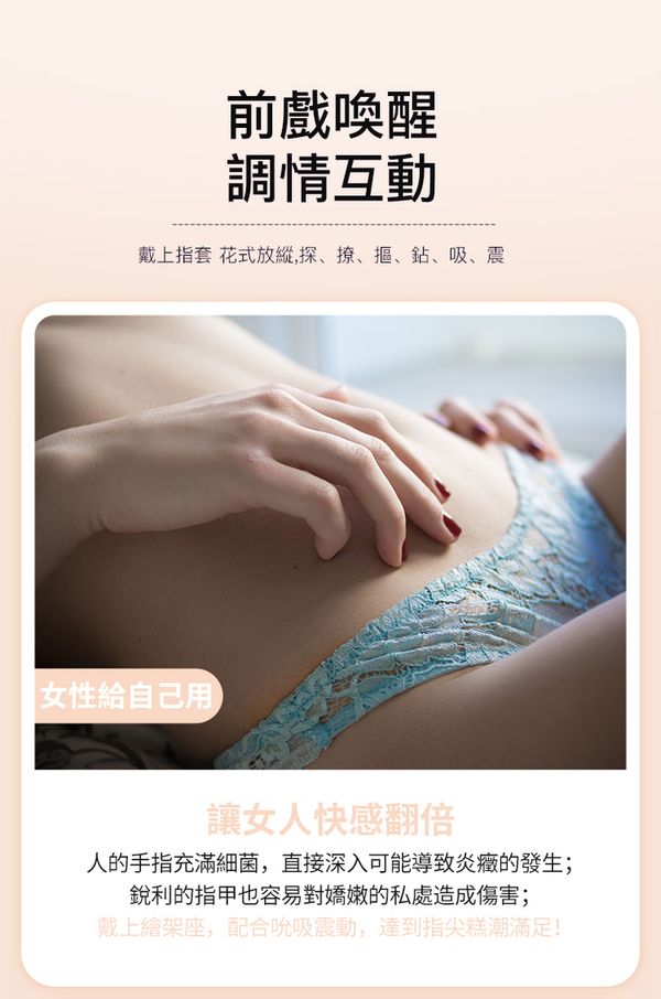 為女性同步高潮而生! EROCOME Pictor 繪架座手指穿戴摳動雙頭吸啜按摩棒 為伴侶帶來一點新刺激!再不是單人玩物,終可以用手指按摩為女伴達成 G 點高潮,一起參與對方的高潮! 吸啜配合自主式摳動,為女士帶來雙重高潮。 採用超靜音設計,安心使用。 採用柔軟矽膠製成,舒適柔軟,防治指甲刮傷。 設有防水功能,可淋浴使用及沖洗清潔,但不能浸泡。 同時享受陰蒂刺激及 G 點刺激,雙重愉悅感。 強大吸啜舌舔功能,刺激陰蒂 C 點高潮快感! 設計非常有彈性,可任何調較角度,締造出超自然手指摳動。 按摩器設計採用彈力矽膠卡位,緊貼手指,在歡愉過程中不易掉落。 設有 10 種震動功能模式。 按摩棒尺寸較一般插入式玩具幼小,比較適合陰道較緊窄的女士,不易撐大私處。 適合新手用家使用。