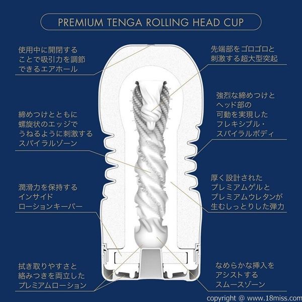Tenga - 新 PREMIUM 女上男下型飛機杯,以15年經驗打造的終極手持式飛機杯!內壁比一般的同款產品厚1.5倍,創造了更舒適和更令人滿意的插入體驗!杯體上部自由旋轉擺動,可產生前所未有的快感!採用可繞體形,自由地刺激前後、左右、迴轉與前端部。上部為旋轉體,根部為活塞體,未曾有過的動作成為可能。並且射精時,因對敏感的前端部的刺激,可得到嶄新的快感。