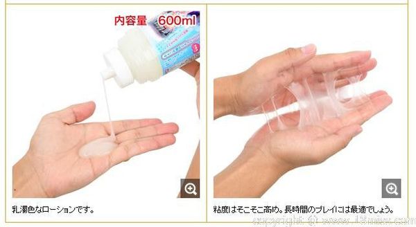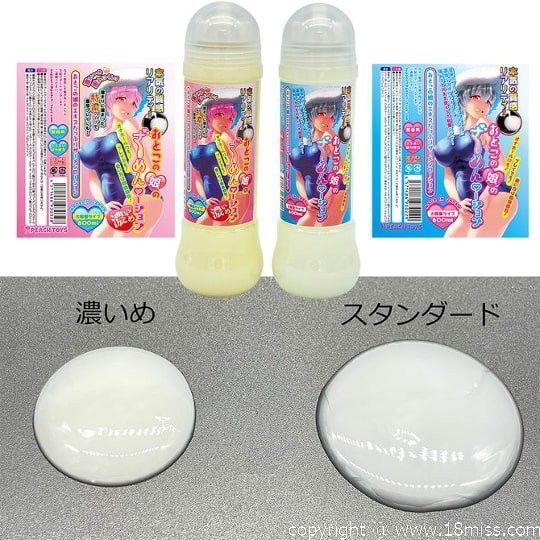 不需要再稀釋,直接就能使用的大容量潤滑液。顏色與質感也是非常講究,為了呈現那自然的感覺,經過好幾次的測試,並實際放在肚子上來做顏色的比較後才完成的「偽娘的精液」。