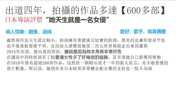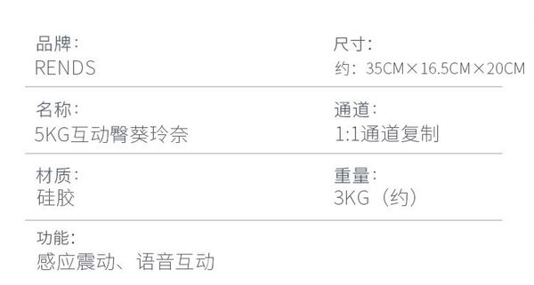 日本導演評價“她天生就是一名女優” 個人特徵:甜美,清純 愛好:歌手、寫真偶像 感應震動 語音互動 品牌:RENDS 尺寸:35*16.5*20cm 名稱:互動臀-葵玲奈 材質:矽膠 通道:1:1通道複製 重量:5KG (約)