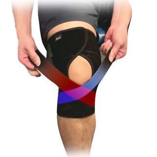 1)將護膝套在膝蓋上,確保護膝的開口貼緊髕骨底部。