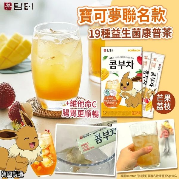 現貨 – 韓國 Damtuh 丹特寶可夢聯名款芒果荔枝康普茶 (1盒10入) #1516