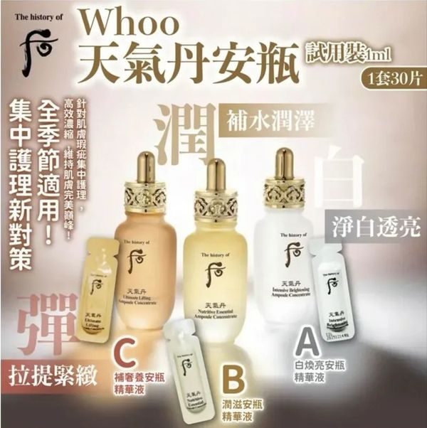 供應商現貨 –韓國WHOO后 天氣丹華炫 安瓶精華小樣 1ml*30片
