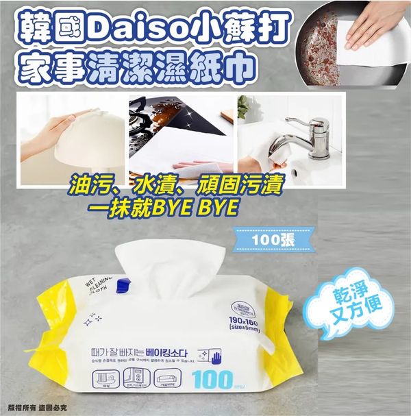 供應商現貨 –韓國大創 Daiso 小蘇打家事清潔濕紙巾 (1套2包共200張)