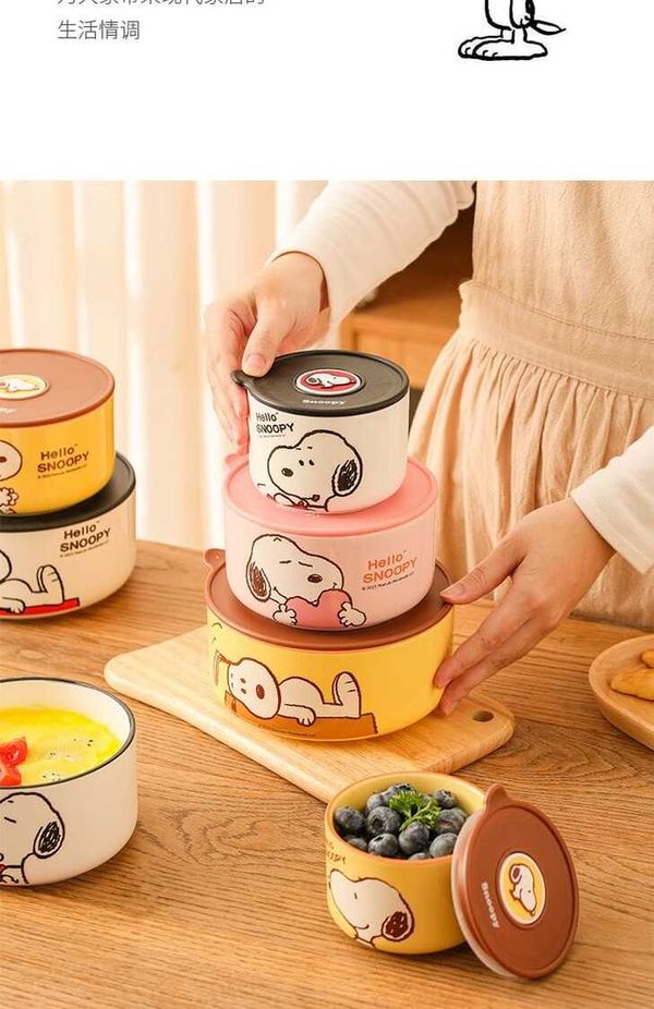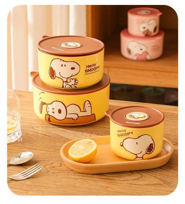 史努比跳入廚房啦!🥳 一套3個Size:大碗(900ml🍜)、中碗(640ml🍚)、細碗(300ml🍓),疊埋收納超慳位!碗身用高溫燒製陶瓷🔥,耐冷熱❄️🔥,微波爐叮熱、雪櫃冷藏、甚至焗爐都得(記住拎走個蓋喎~)!矽膠密封圈💦鎖實鮮味,透氣閥設計💨唔怕食物「焗到濕晒」,帶飯返工🍱、野餐🧺超穩陣!