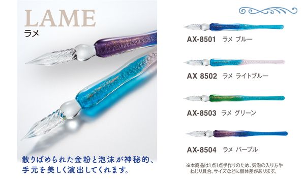 日本文具SEDIA 旗下品牌Azonx推出了四款不同設計的玻璃筆。由於均是手製,每一枝都是獨特的。