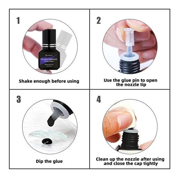 1. Shake 10 - 20 times to ensure the ingredients are well-mixed. Clean the natural lashes thoroughly.