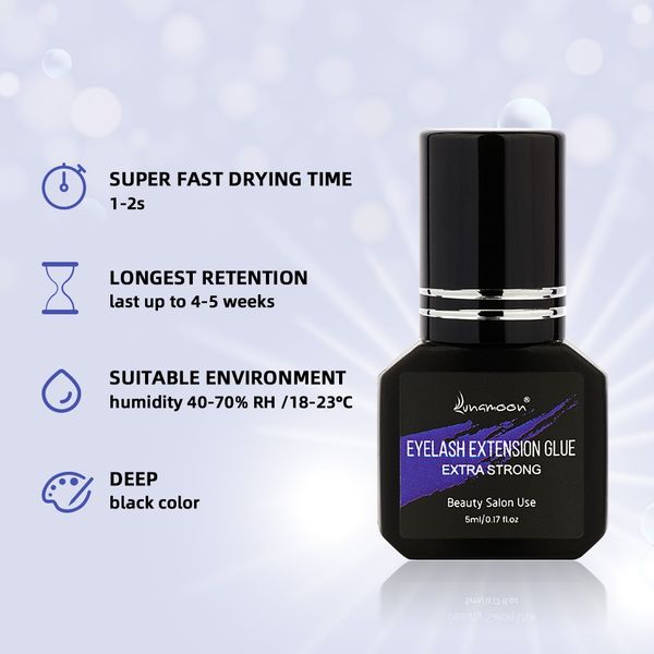 lunamoon Super Eyelash Glue (Recommended by professional lash artists, quick-drying, anti-allergic, odor-free, safe black glue, suitable for pregnant women)