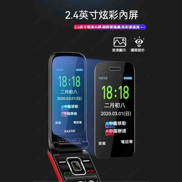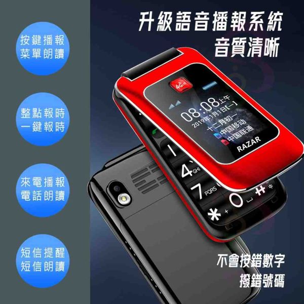 (與DOOV/朵唯 M99 同款) Razar M99 4G LTE 語音王雙屏翻蓋長者手機|超大字體大按鍵大鈴聲|雙卡雙待|行貨1年保養