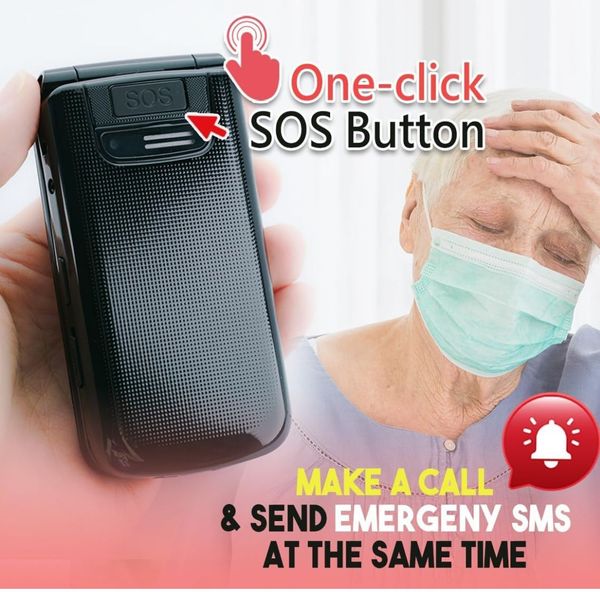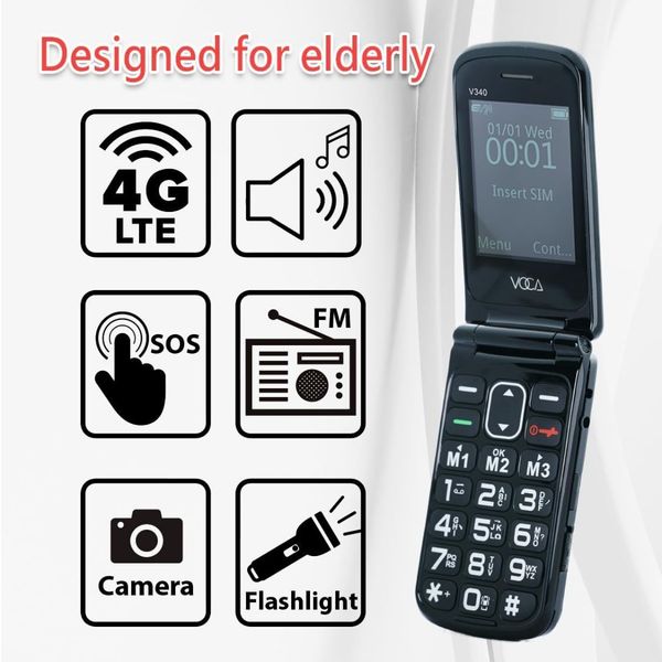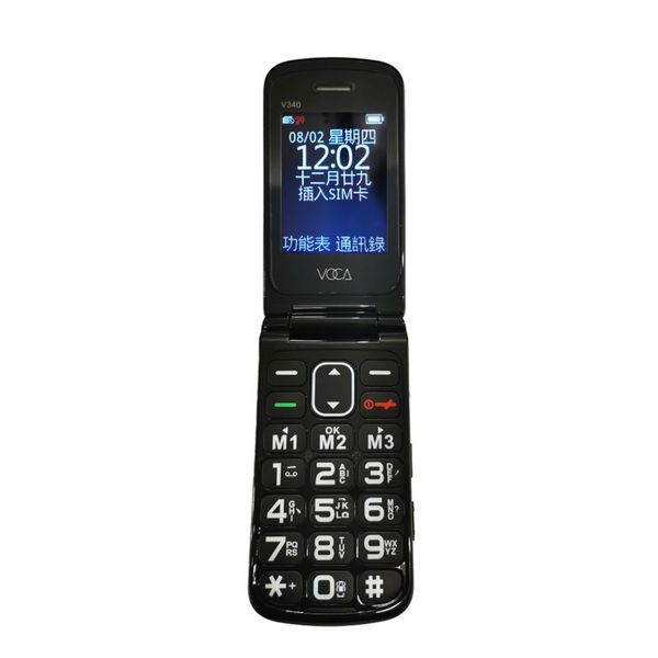 VOCA V340 - 摺疊超輕4G長者手機 - 僅重79克, 大字大聲 , SOS求救按鈕 - 黑色 | 香港行貨 1年保養