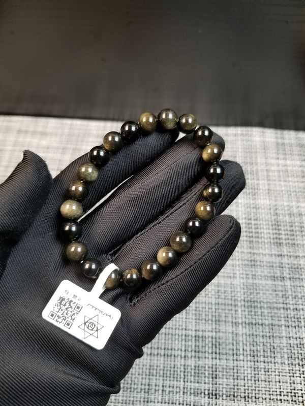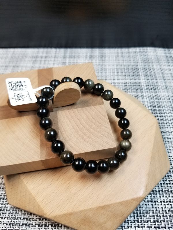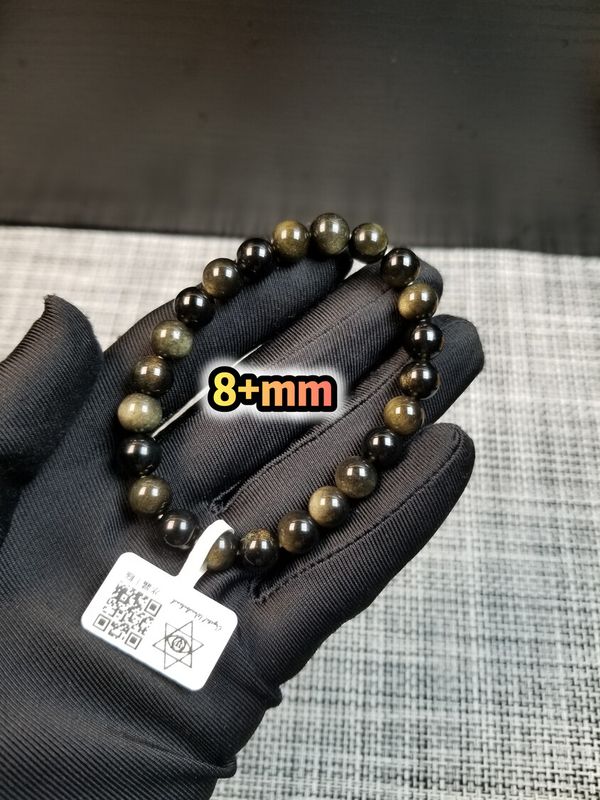 水晶 (辟邪擋煞之選)(隨機)天然高質貓眼黑曜石(金曜)手串 8+mm