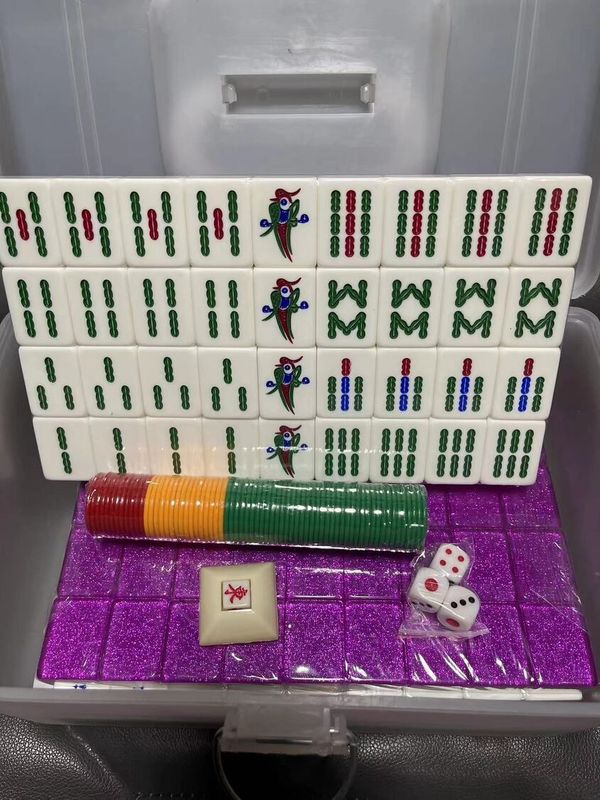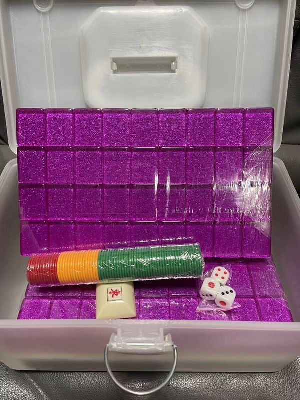 廣東牌7分 水晶麻將 紫色 麻將盒 水晶麻雀 家用麻將 家用麻雀 麻將