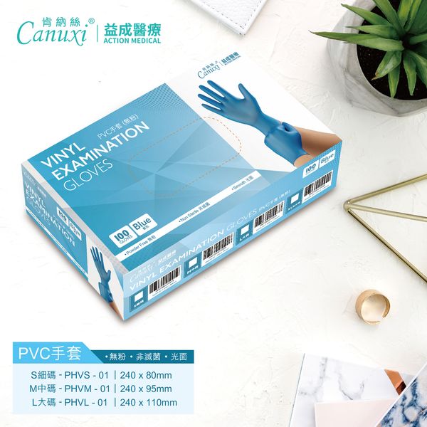 Canuxi PVC手套 (無粉) (藍色) (100個/盒) - M 中碼 (240 x 95mm)