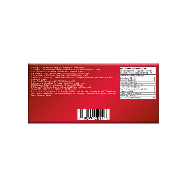 6. Kimura, et. al. "Intravenous Uptake of NMN is Safely Metabolize and Increases NAD⁺ Levels in Healthy Subjects." (2022) (Refer to NMN)