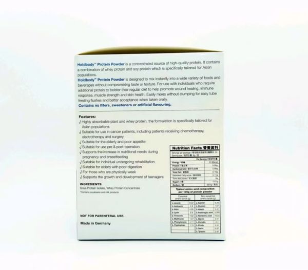 Holdbody康癒素蛋白粉可以加入各種各樣的食物和飲料之中,而不會影響味道或質地。有效改善胃口、提升體重、促進傷口癒合、增強免疫功能、提升肌肉力量及皮膚健康。