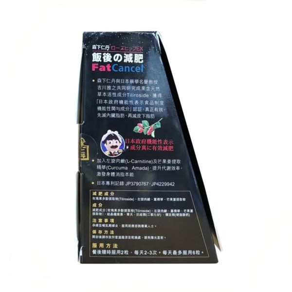 森下仁丹專利玫瑰果多酚提取物 ( Tiliroside MJ ) 、 左旋肉鹼 、 薑精華 、芒果薑提取物