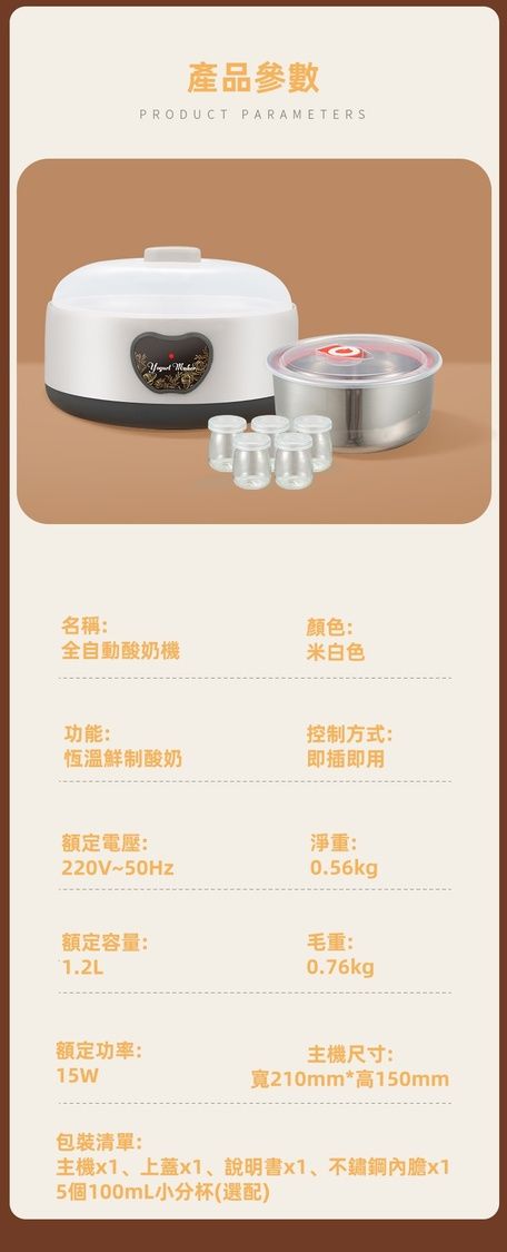 家用全自助酸奶機(包含不鏽鋼內擔)Home self-service yogurt machine (including stainless steel inner basket)