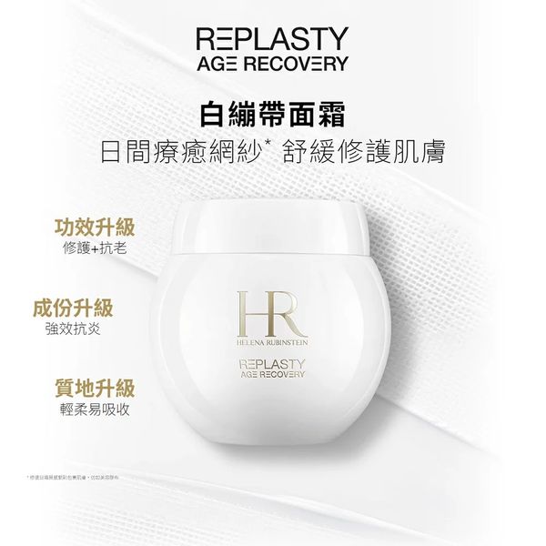升級版REPLASTY修復日霜蘊含「日間防禦抗衰老配方」。高效抗炎紓緩成分,為受損肌膚提供全天候保護、修復、及補水滋潤,防止由炎症引發的肌膚早衰問題,提升肌膚防禦能力,密集修護所有歲月痕跡。輕柔網紗質地,完美搭配妝前使用,令後續妝效更貼服自然。