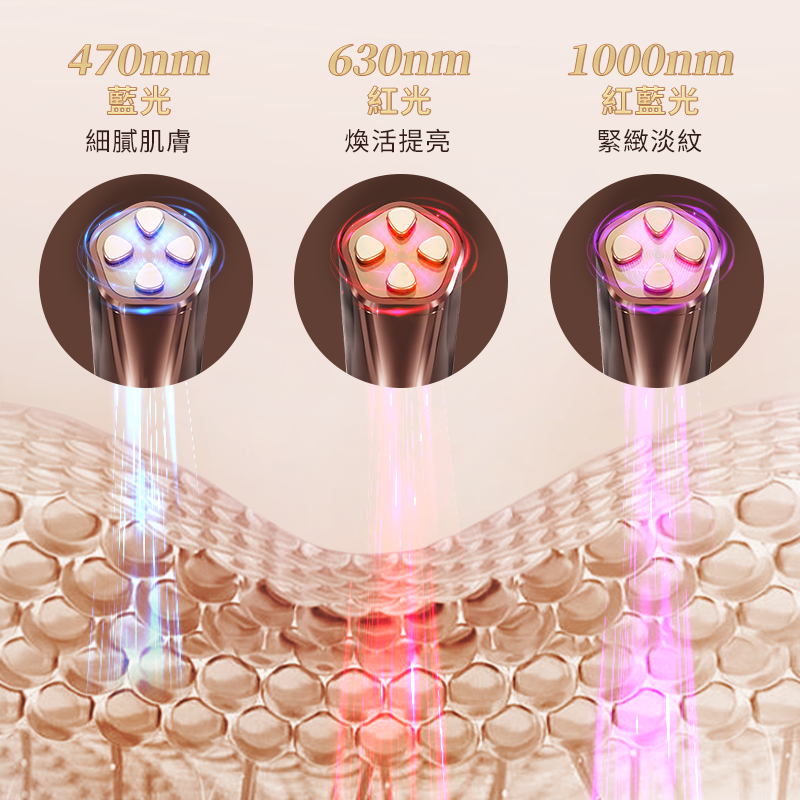 紅藍光—融合紅光、藍光,加成緊緻眼周肌膚、祛皺淡紋