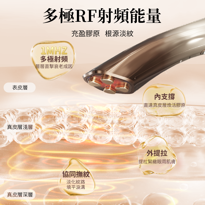 - 1MHz多極RF射頻:激活膠原,淡化細紋