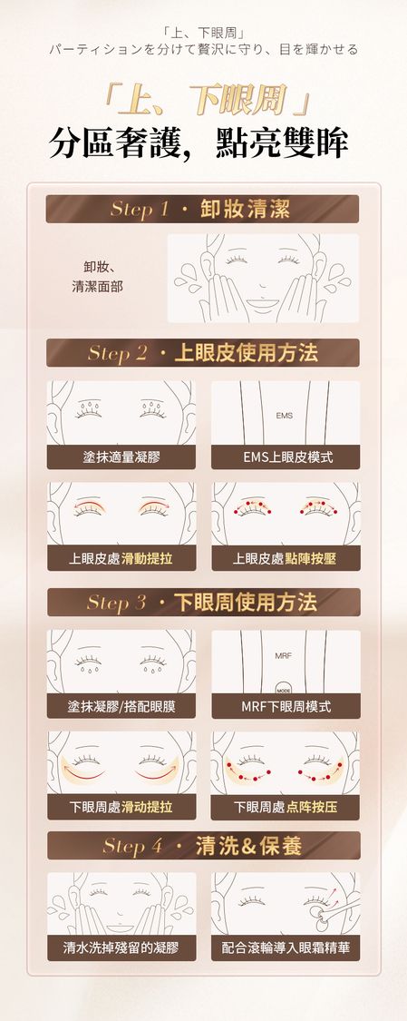 - EMS微電流:緊緻眼周,改善眼袋