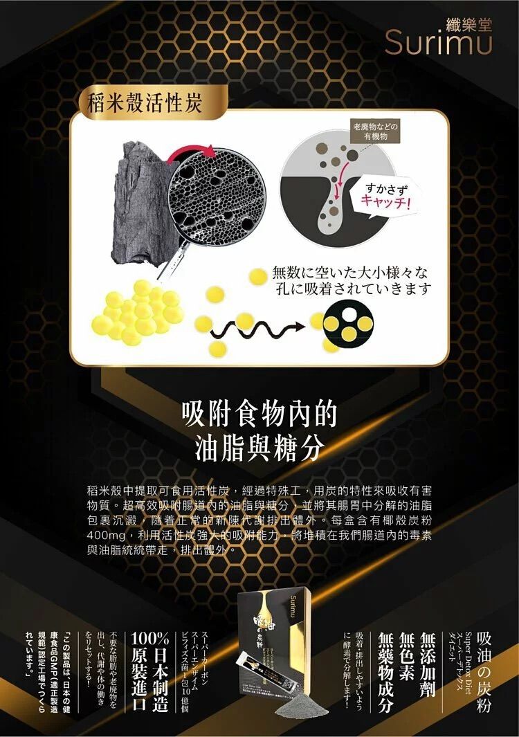Surimu纖樂堂吸油之炭粉15包/盒 吸油隔脂排毒神器 日本製造及原裝進口
