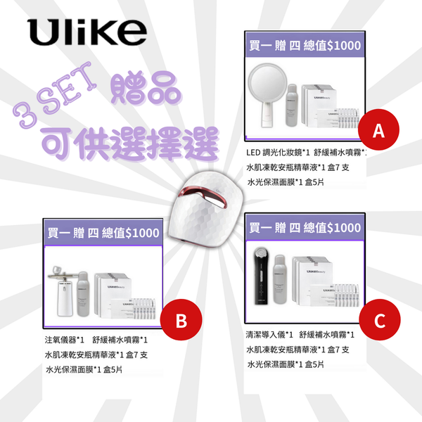 【香港行貨】Ulike白皇后LED面膜儀 連贈品Set C 原廠兩年保養
