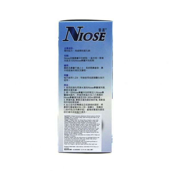 套裝包括:灌洗器1套、鼻竇沖洗粉劑10包