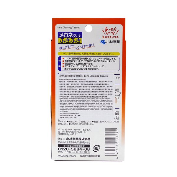 小林製藥-小林眼鏡清潔師濕紙巾 40片裝 (平行進口)