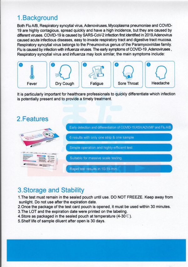 REAGEN - 新冠病毒 &RSV合胞病毒 &ADV腺病毒 &MP肺炎黴漿菌 &甲/⼄型流感 (六合一) 快速抗原檢測劑盒 1支裝
