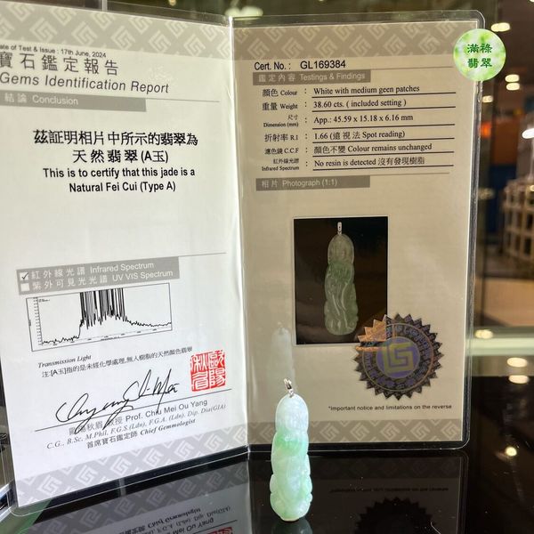 附送:香港翡翠鑑定證書GL169384(天然翡翠A貨)