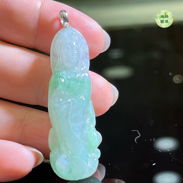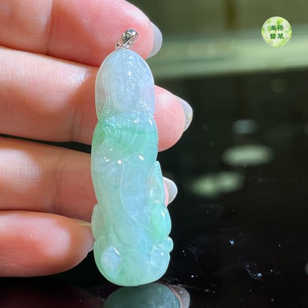 名稱:18k翡翠A貨玉器玉觀音菩薩翡翠吊墜
