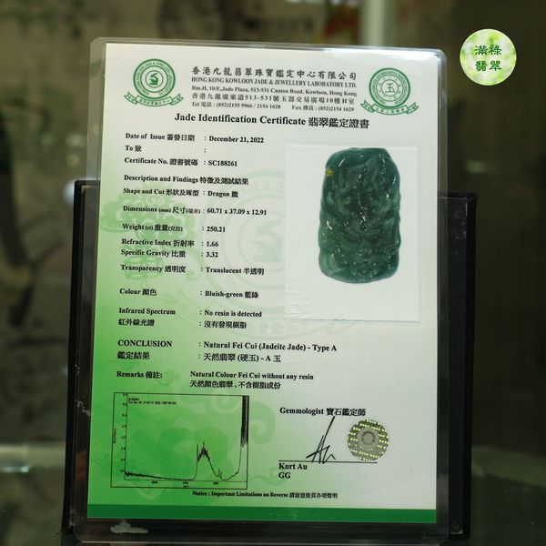 鑑定:香港九龍翡翠珠寶鑑定中心有限公司